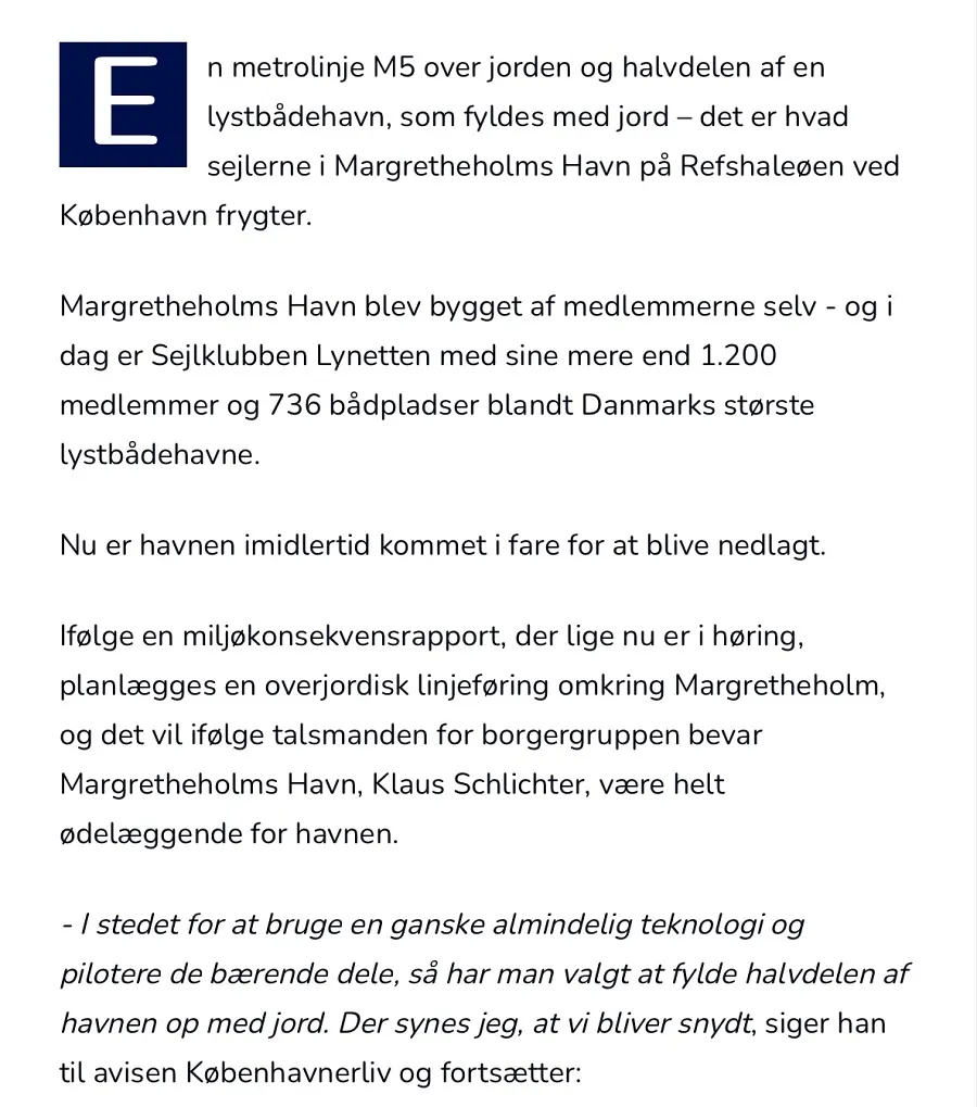 Det er derimod By & Havn, det stats- og kommunalt ejede selskab, som står bag opførelsen af det gigantiske byggeprojekt Lynetteholmen; den kunstige halvø, der skal huse 35.000 indbyggere og er et af Danmarkshistoriens største byggeprojekter.
