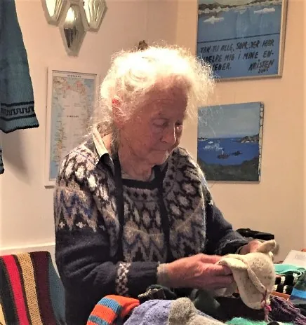 Kirsten Sørensen med hjemmestrik i Fedtekælderens julebazar 2018